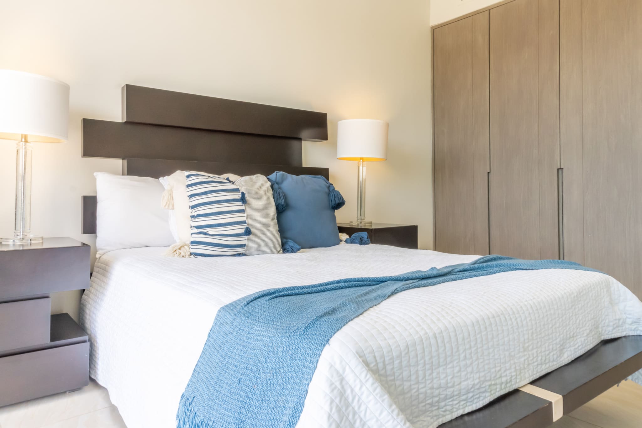 - The master suite features a plush king-size bed, that offers direct access to a private balcony with ocean view. The en-suite bathroom boasts a lavish soaking tub, perfect for unwinding after a day of exploration.