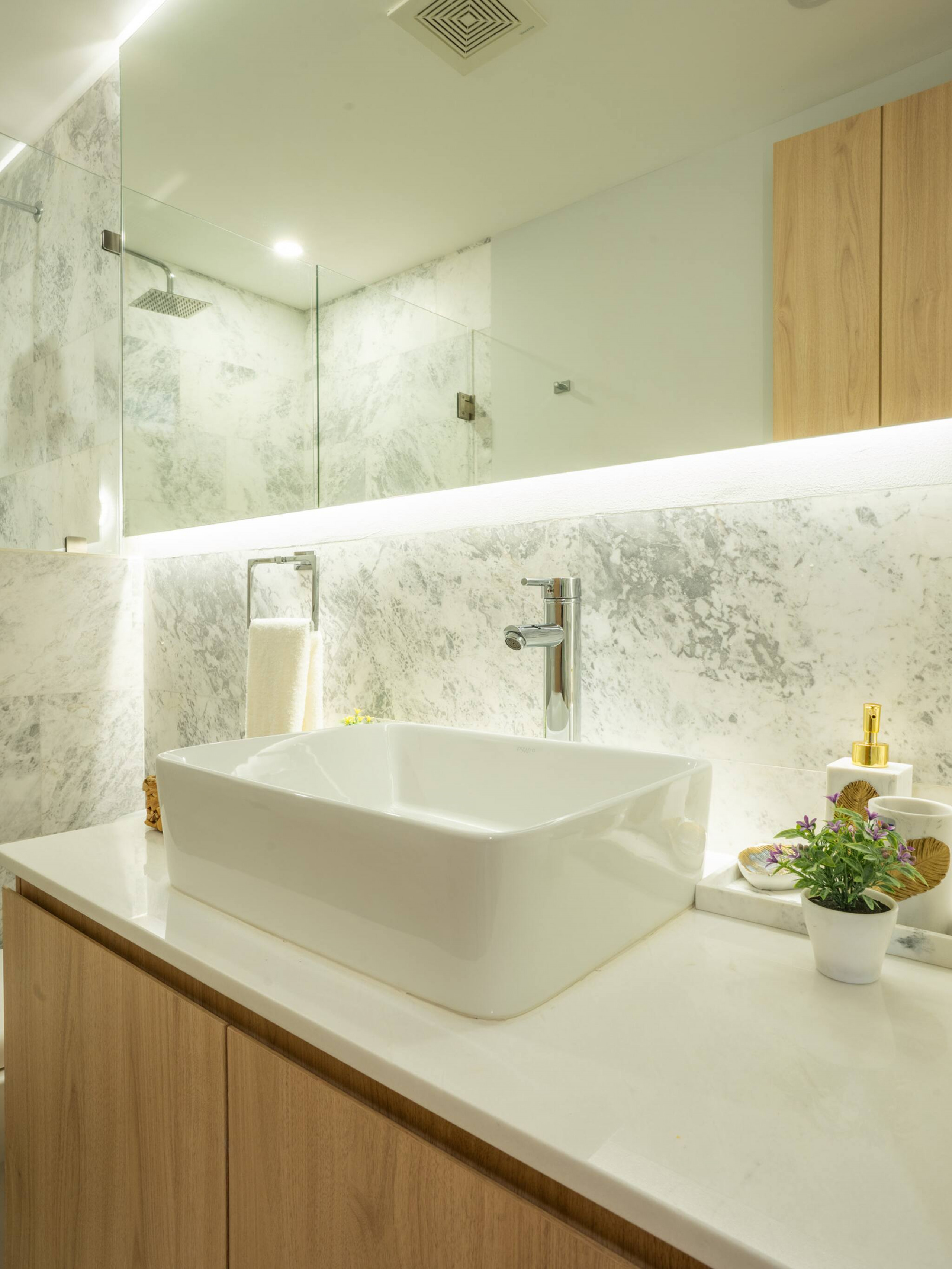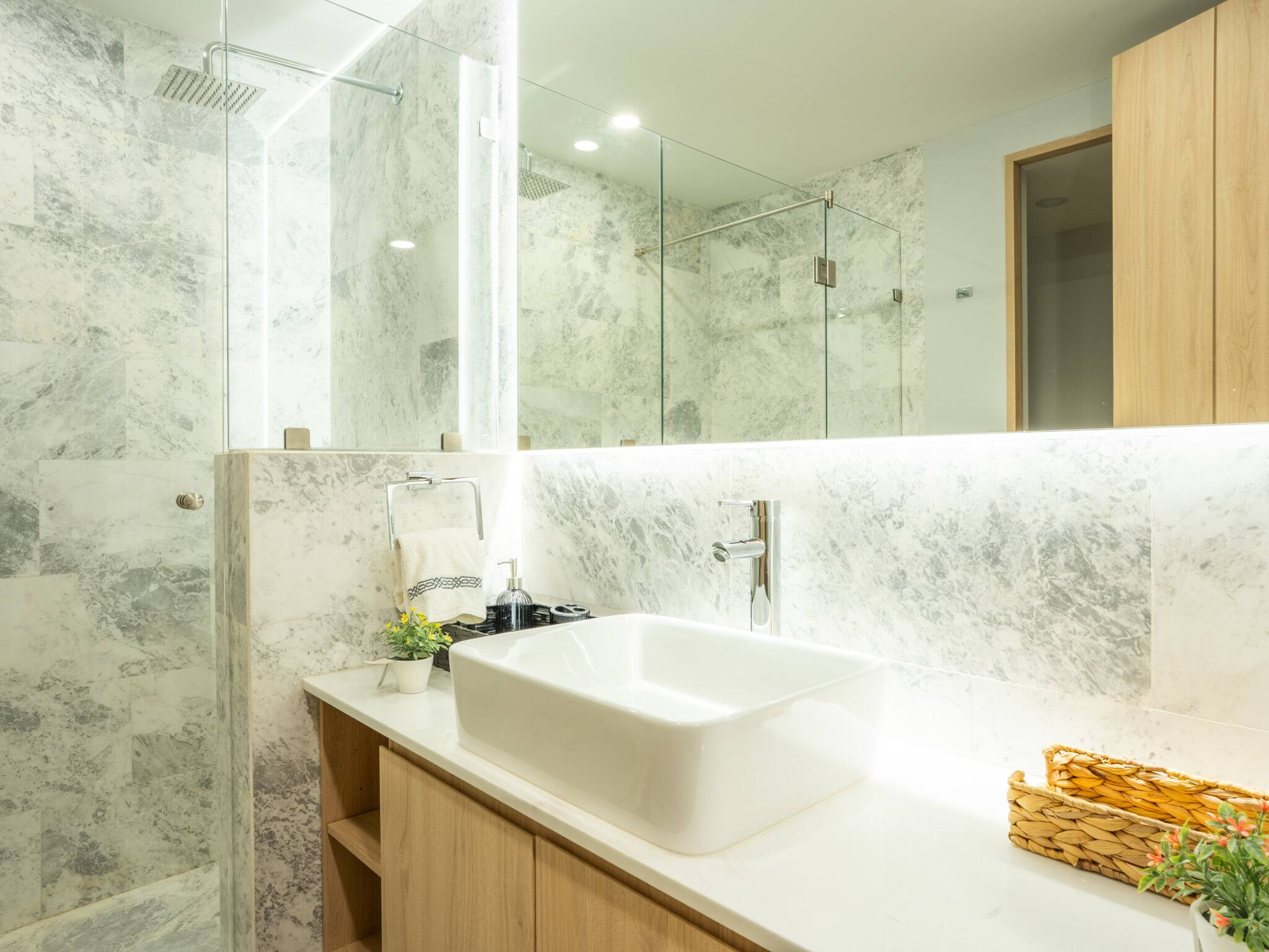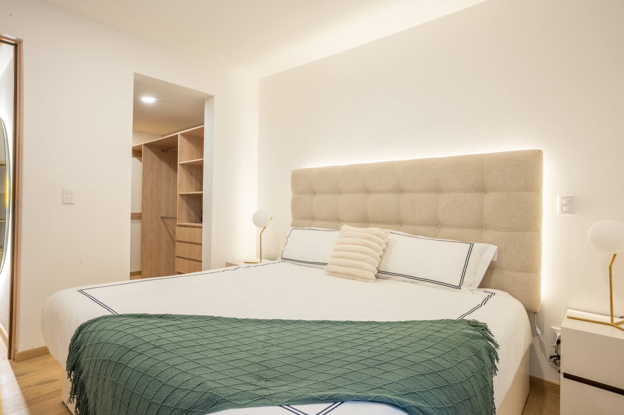 - Master Bedroom: King-size bed, walk-in closet, and a private en-suite bathroom with shower.
