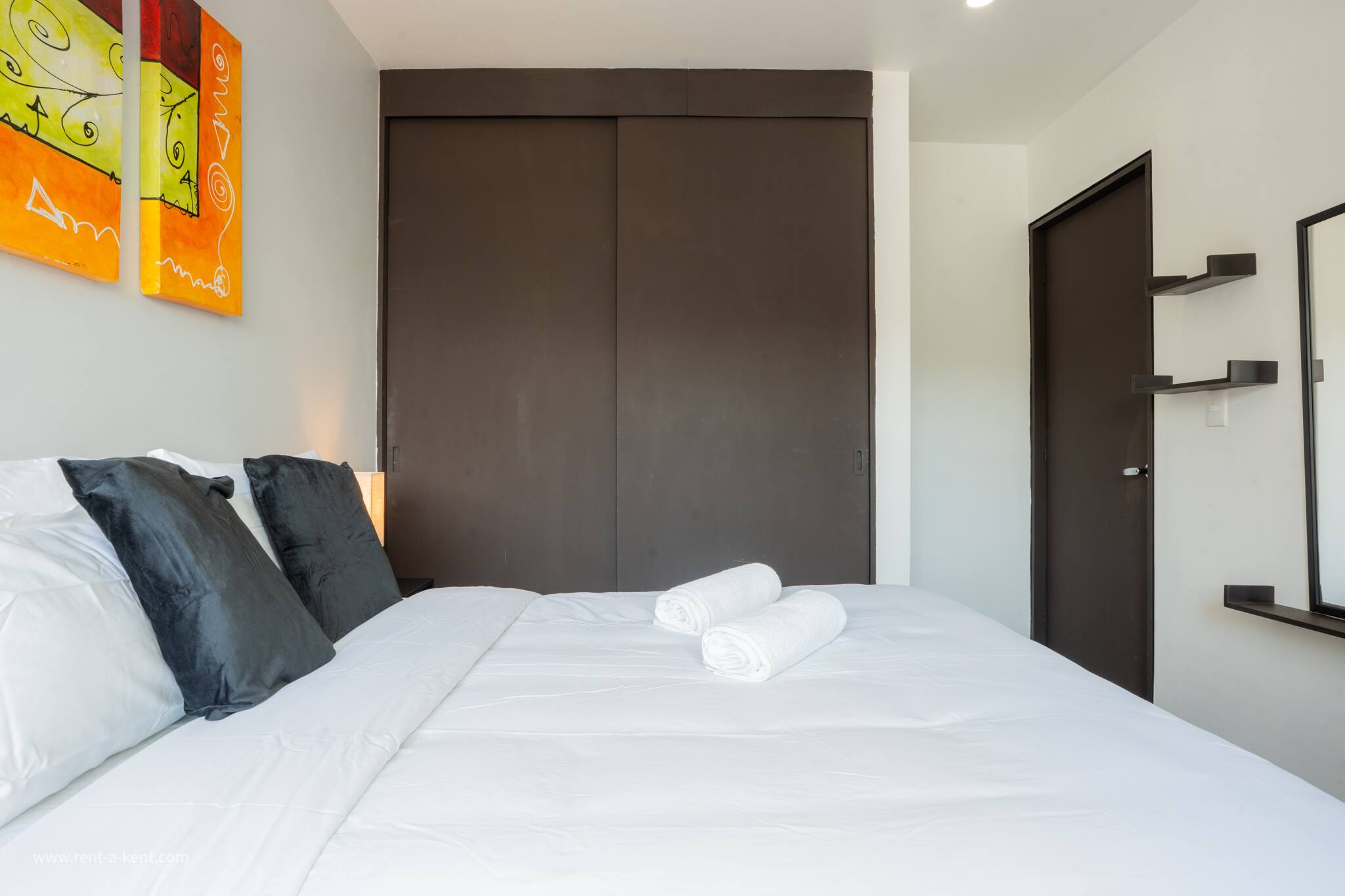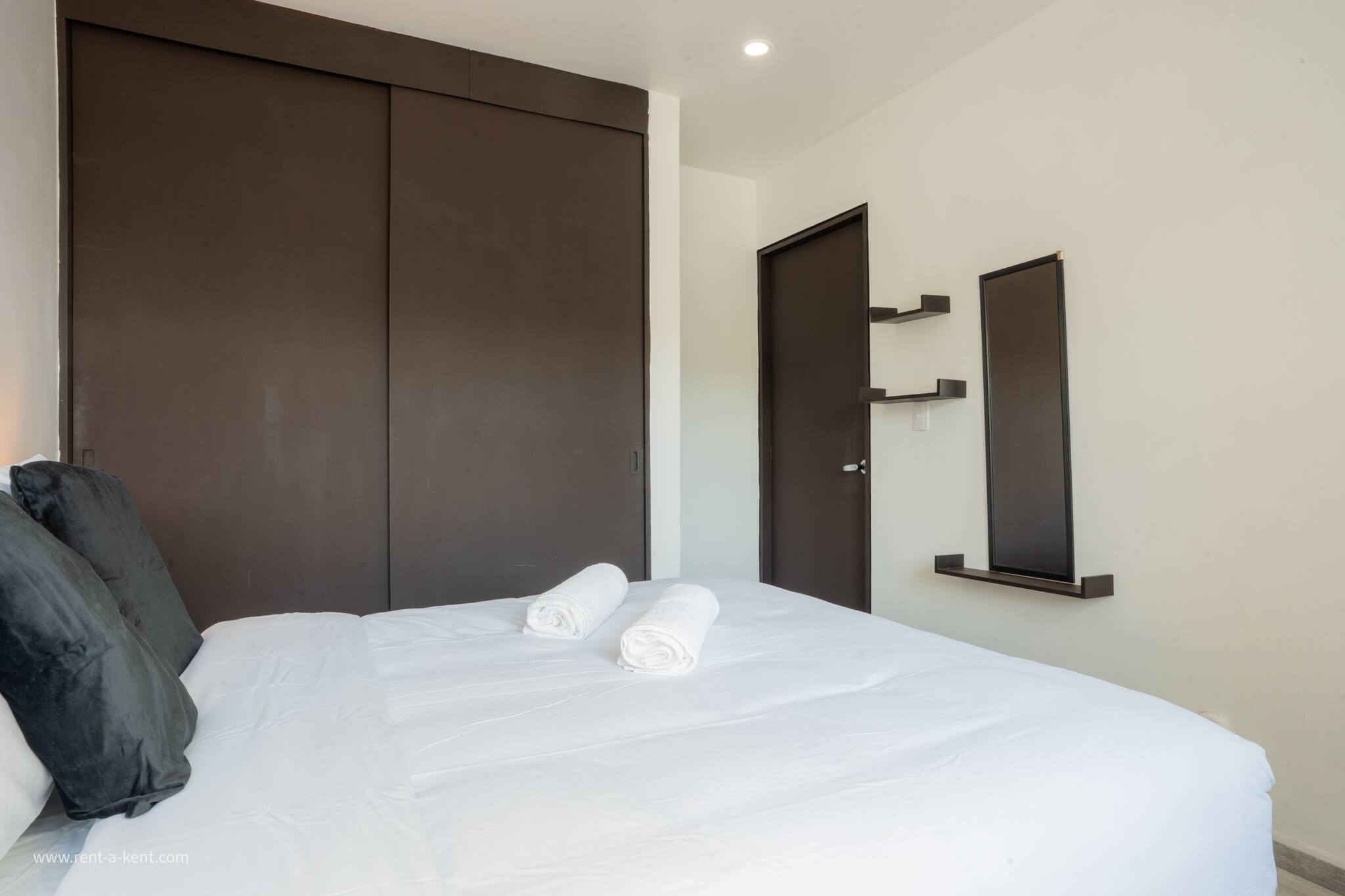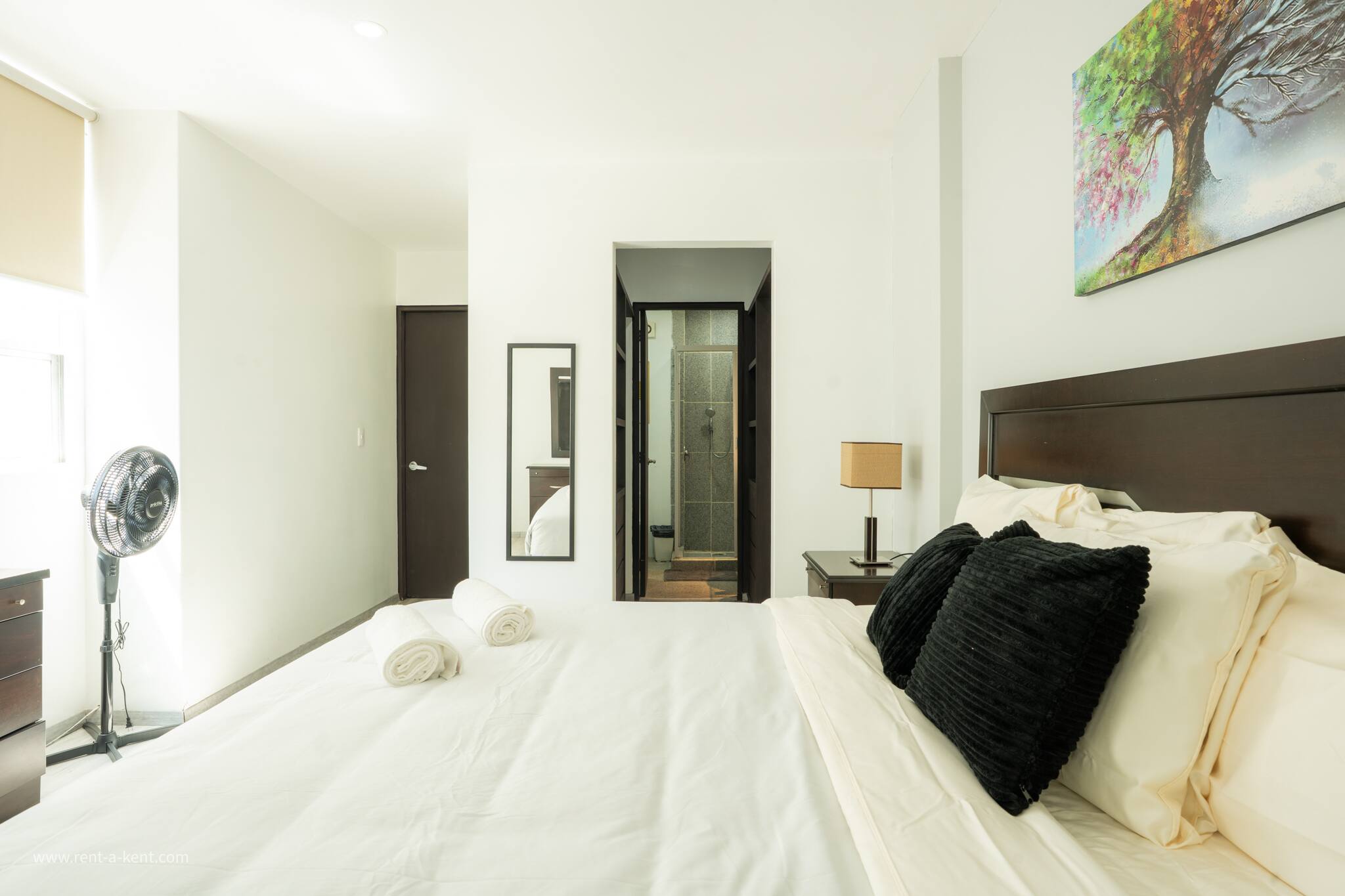 - Master Bedroom: King-size bed, walk-in closet, and a private en-suite bathroom with shower.