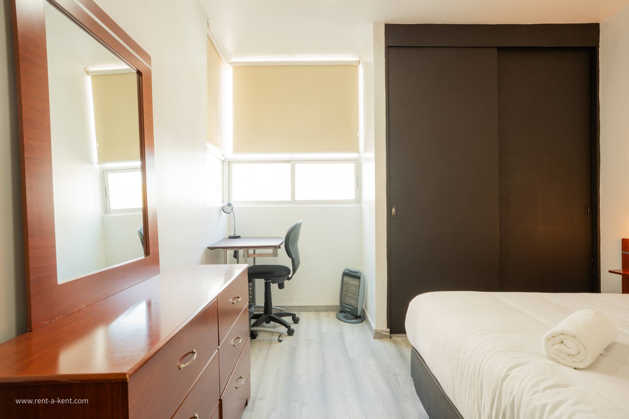 - Third Bedroom: Queen-size bed and a dedicated working desk.