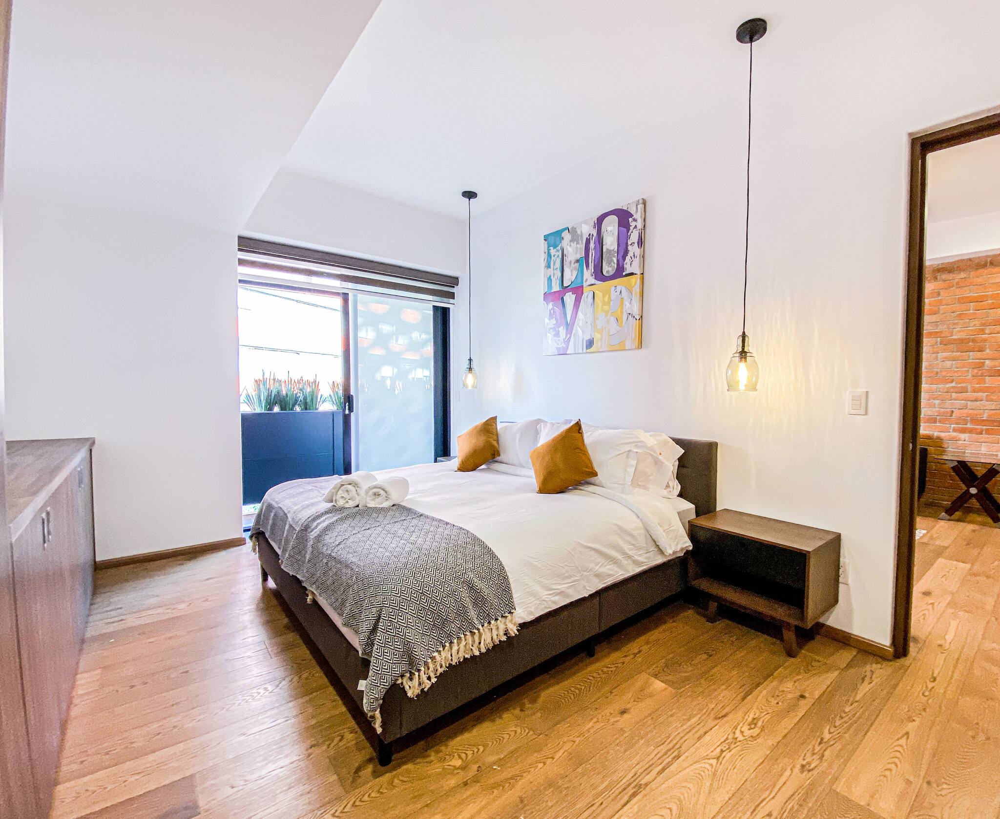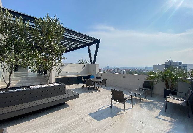 Enjoy the sunset from the rooftop with pool and an amazing view of Mexico City in this completely equipped new apartment. Located between Roma and Condesa neighborhood, surrounded by cafes, restaurants, parks and boutiques