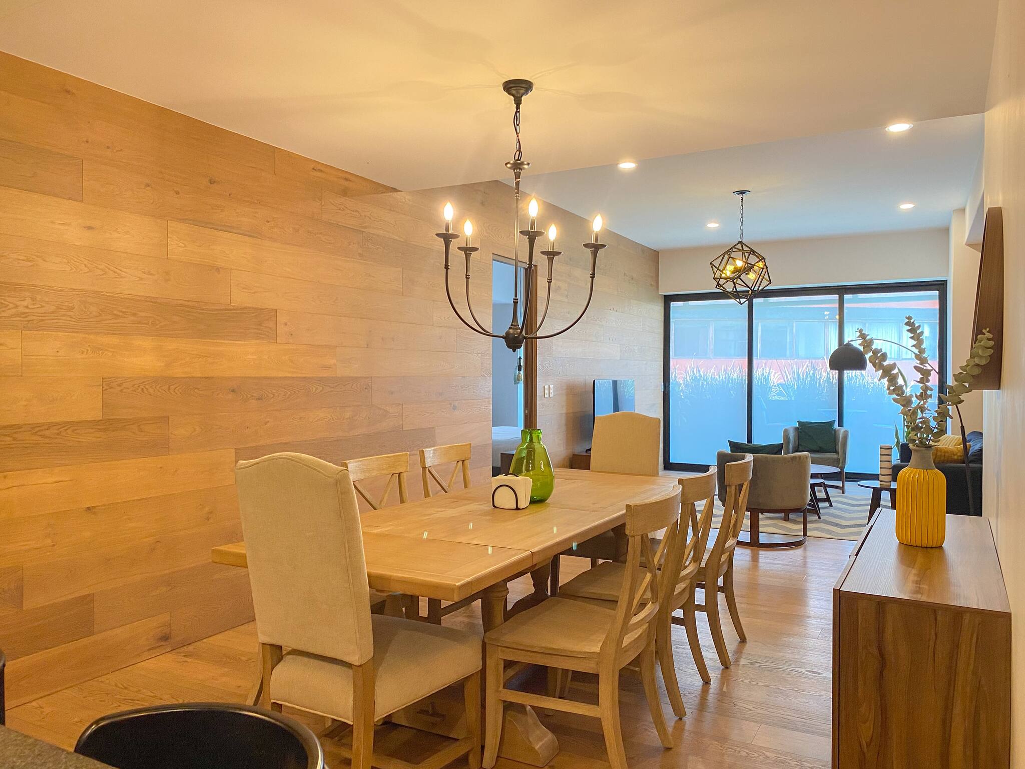 The living area is bright and airy, with modern decor and comfortable seating. A fully equipped kitchen offers everything you need to cook at home, and the dining area is perfect for sharing meals or planning your day's adventures.