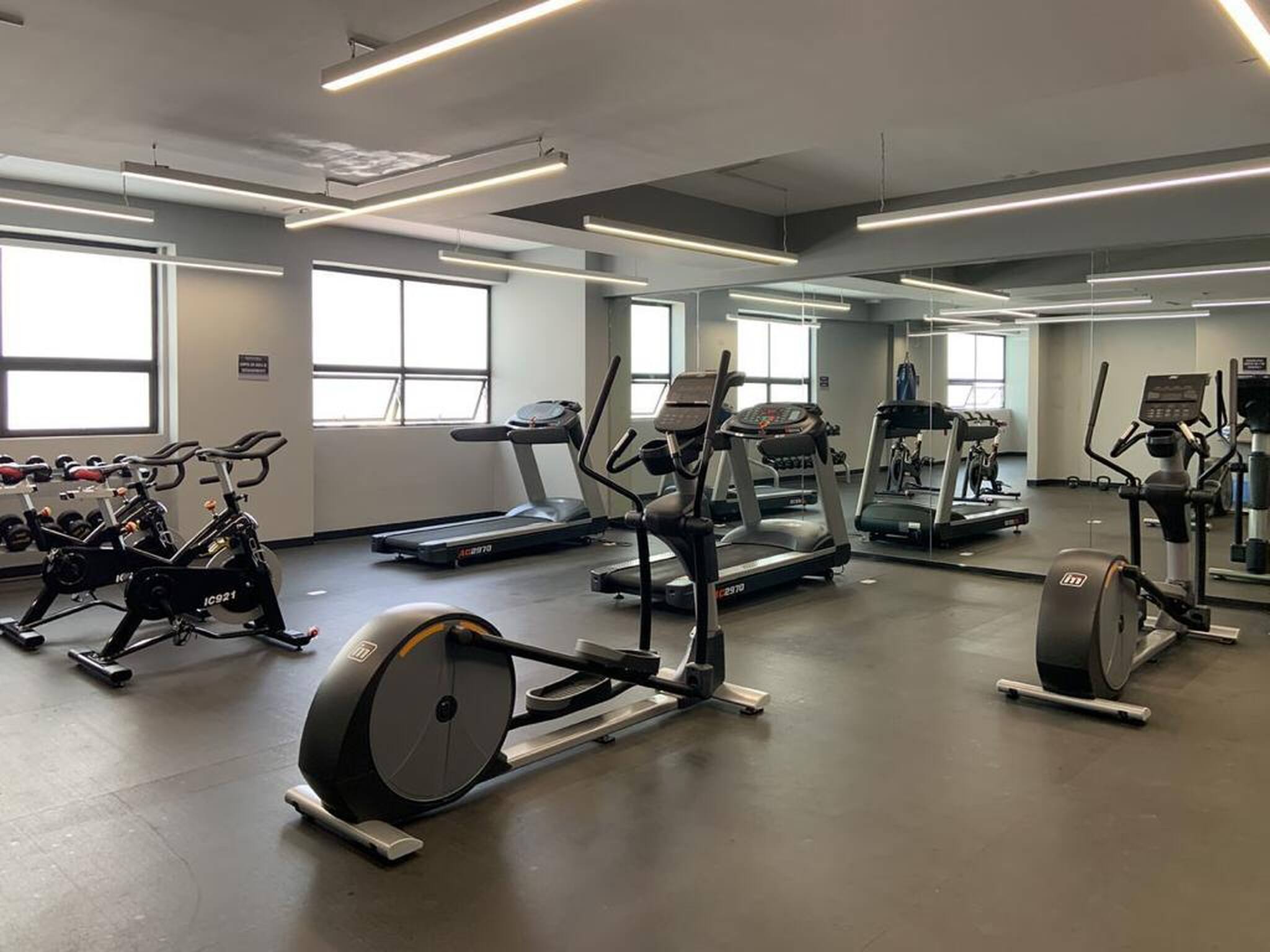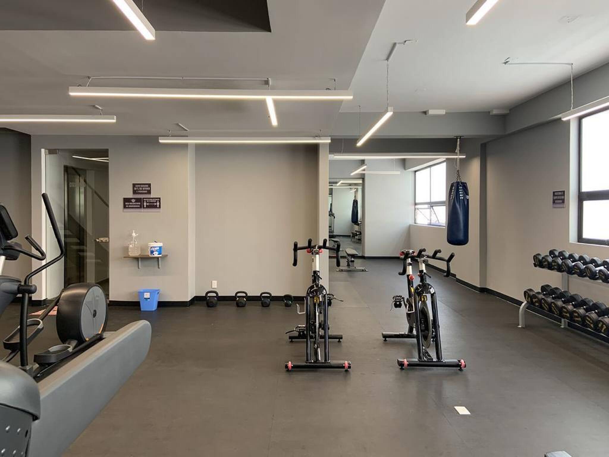 The apartment offers high-speed WiFi, two televisions, and features designed for comfort such as smoke and carbon monoxide detectors, blackout curtains, hangers, and cleaning products. A shared gym allows you to maintain your exercise routine during your stay.