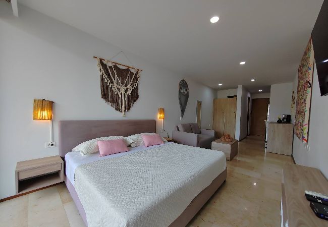 Escape to the stunning beaches of Playa del Carmen in this cozy and modern studio. Perfect for small families, couples, or groups of friends - this space offers comfort for up to 4 guests. Relax and recharge with all the comforts of home, plus access to luxurious building amenities, including rooftop pool, jacuzzi, and gym.